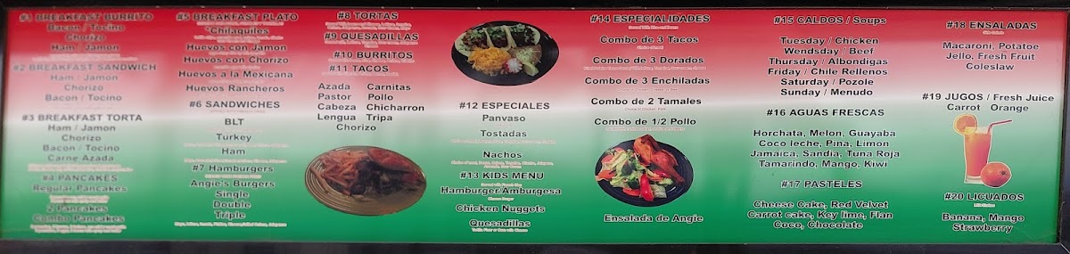 Angie's Deli and Mexican Food Menu